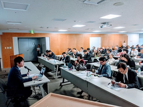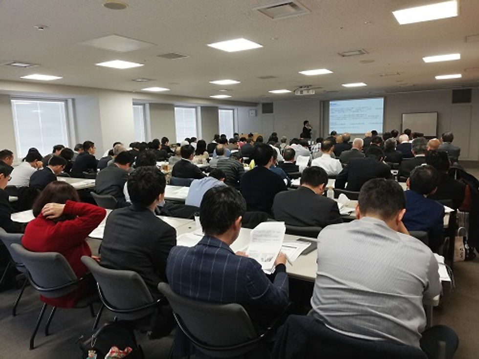 会場は当初の定員70名を超えた100名の方が参加された状態で超満員となりました。 主催者からは、「会場の関係でキャパシティー以上の申込は全部断った、 本当に心苦しかった」とお話しされました。
